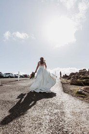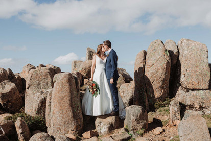 Rachel and Sam love nature and all things hiking! Together, they'd done trail hikes all around rural Tassie; it's a special place for them. Mount Wellington was an absolutely stunning backdrop for their wedding photoshoot. Can't get more Tasmanian than that. The weather can be really temperamental on the top. When we went for a scout the previous day, it was near zero and had ridiculous winds. However, on their wedding day, the sun surprised us all!