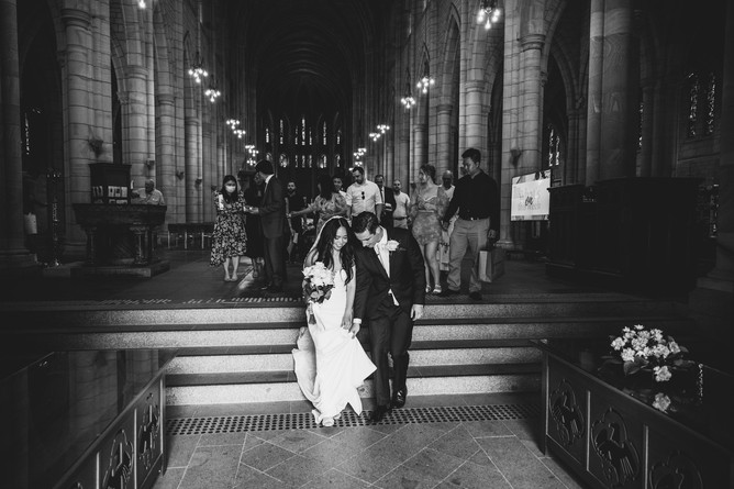 This was my first time shooting in the beautiful St John's Cathedral at the heart of Brisbane City. The sky-high ceilings, colourful stained glass and holy setting brought a state of grandeur to the day, highlighting the significance and importance of the marriage covenant under God.